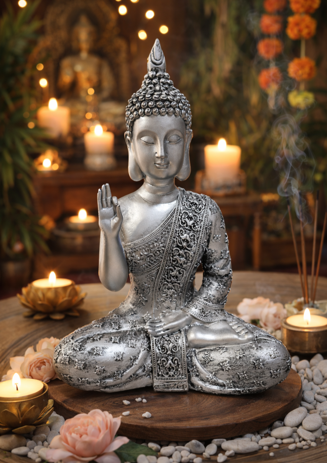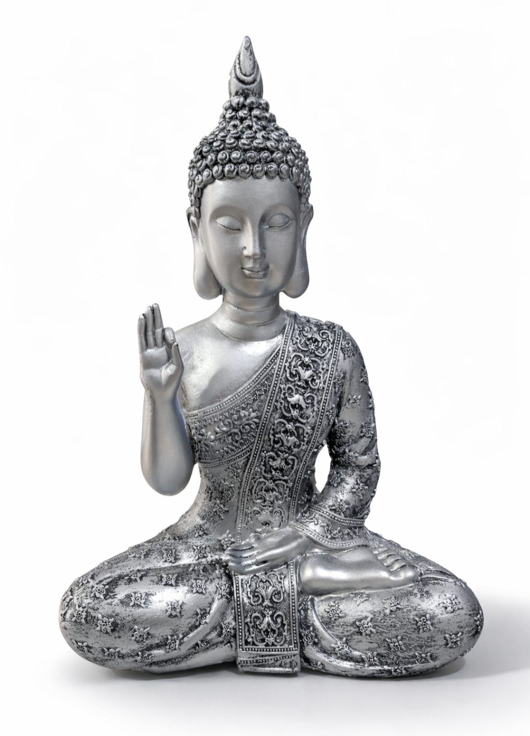 Buda plateado 27cm altura poliresina cantidad