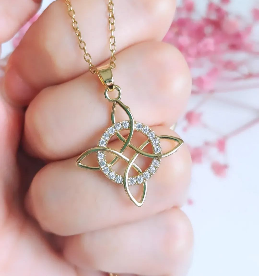 / Collar Nudo de Bruja acero quirúrgico dorado con zirconias
