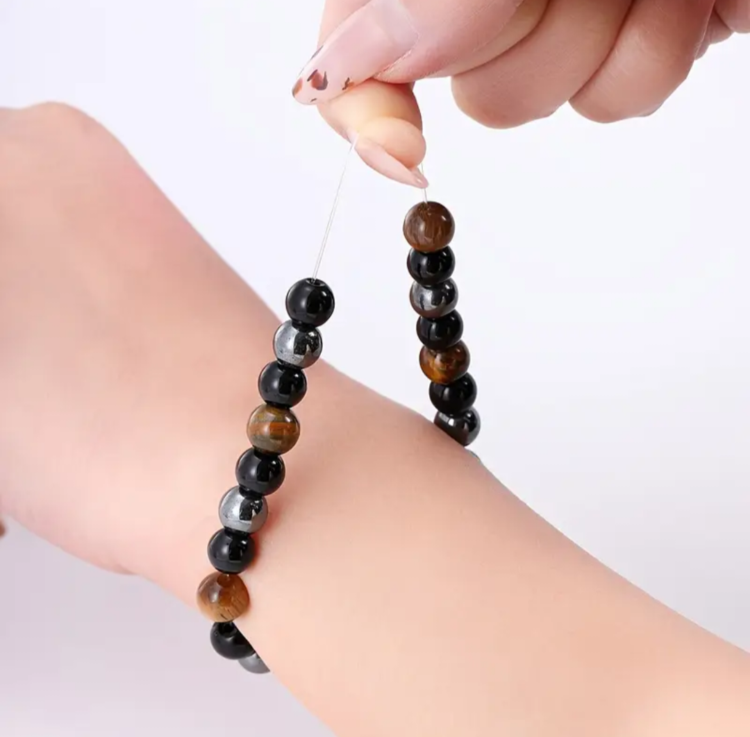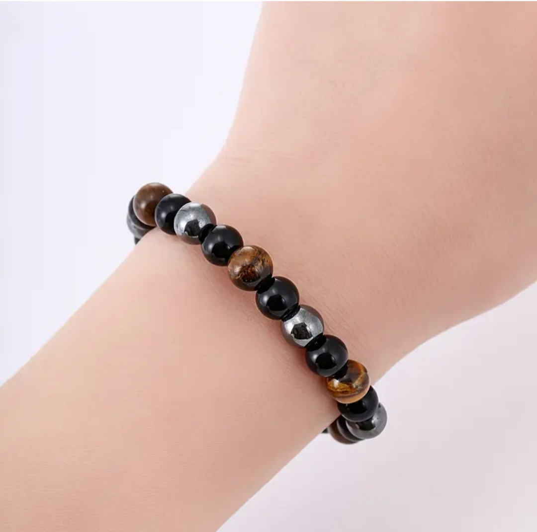 Pulsera elástica de Hematites, Obsidiana y Ojo de Tigre – 8 mm